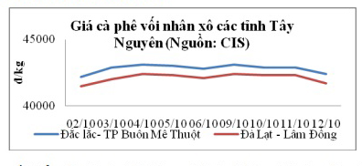 Cụ thể, trong tuần qua, giá cà phê trên thị trường trong nước biến động giảm cùng với xu hướng giảm của thị trường cà phê thế giới. So với cuối tuần trước, giá cà phê vối nhân xô các tỉnh Tây Nguyên giảm 700 – 800 đ/kg xuống còn 41.700 – 42.400 đ/kg. Giá cà phê Robusta giá FOB giao tại cảng TP.HCM giảm 40 USD/tấn xuống còn 1.885 USD/tấn.